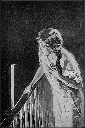 “But he did not come, and after a while I stole to the head of the stairs and looked down. There was a low light in the hall and a brighter one from the library, the door of which was ajar. I supposed that father was working late over some papers, and I knew that I must not disturb him. I crept back to bed at last, with a sigh, but left my own door slightly open, so that if I should happen to be awake when he passed, I might call to him.