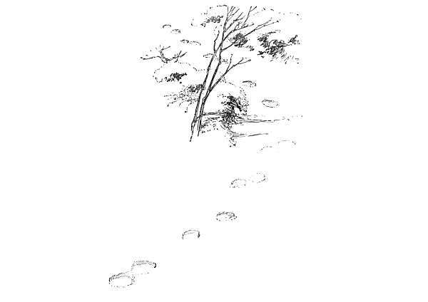 There is one curious habit suggested by these winter dens that I have never seen explained, and for which I cannot account satisfactorily. On certain soft days in winter Mooweesuk wakes from his long sleep and wanders off into the world. At times you may follow his track for miles through the woods without finding that he goes anywhere or does anything in particular, for I have never found that he has eaten anything on these wanderings. Sometimes, miles away from his den, his track turns aside and goes straight to a hollow tree where other coons[43] are spending the winter. It may possibly be that they are his own family, who generally have a den of their own, and whom he visits to see if all is well. Sometimes from this den another coon goes out with him, and their tracks wander for miles together; more often he comes out alone, and you follow to where he has visited other coons, or gone to sleep in another tree of his own, or swung round in a vast circle to the tree from which he started, where he goes to sleep again till called out for another season by the spring sun and the chickadee's love notes.