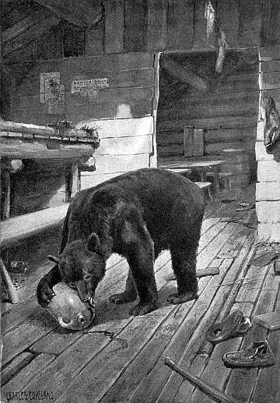 AN old Indian, whom I know well, told me that he once caught a bear in his deadfall. That same day the bear's mate came and tried to lift away the heavily weighted log that had fallen on her back and crushed her. Failing in this he broke his way into the inclosure; and when the Indian came, drawn in on silent, inquisitive feet by a curious low sound in the air, the bear was sitting beside his dead mate, holding her head in his arms, rocking it to and fro, moaning.[4]—