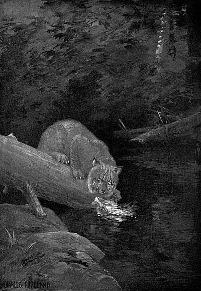 In a lecture, many years ago, Dr. Samuel Lockwood, a famous naturalist, first called attention to this curious way of angling. Since then I have many times seen Mooweesuk at his fishing; but I have never been fortunate enough to see him catch anything, though I have seen a wildcat do the trick perfectly in the same cunning way. Remembering his fondness for fish, and the many places where I have seen that he has eaten them and where the water was too deep to flip them out in the ordinary bear way, I have no doubt whatever that Dr. Lockwood has discovered the true secret of his patient waiting above the pools where the fish are feeding.