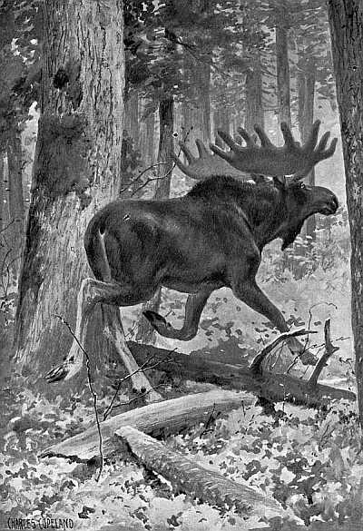 Formerly caribou might be found on these same waterways, and they are the most curious and interesting game that can be hunted without a gun; but years ago a grub destroyed all the larches on which the wandering woodland caribou depend largely for food. The deer, which are already as many as the country can support in winter, take care of the rest of the good browse, so that there was nothing left for the caribou but to cross over the line into New Brunswick, where larches are plenty and where there is an abundance of the barren moss that can be dug up out of the snow. Better still, if one is after caribou, is the great wilderness of northern Newfoundland, where the caribou spend the summer and where from a mountain top one may count[273] hundreds of the splendid animals scattered over the country below in every direction. And hunting them so, with the object of finding out the secrets of their curious lives,—why, for instance, each herd often chooses its own burying-ground, or why a bull caribou loves to pound a hollow stump for hours at a time,—this is, to my mind, infinitely better sport than the hunt for a head where one waylays them on their paths of migration, the paths that have been sacred for untold generations, and shoots them down as they pass like tame cattle.