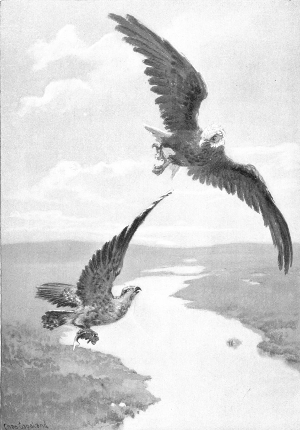 I had started up to interfere, for I had grown fond of the little wild things whose growth I had watched from the beginning, when a great splashing began on my left, and I saw the old mother bird coming like a fury. She was half swimming, half flying, tearing over the water at a great pace, a foamy white wake behind her.—"Now, you little villain, take your medicine. It's coming; it's coming," I cried excitedly, and dodged back to watch. But Musquash, intent on his evil doing (he has no need whatever to turn flesh-eater), kept on viciously after the exhausted little ones, paying no heed to his rear.