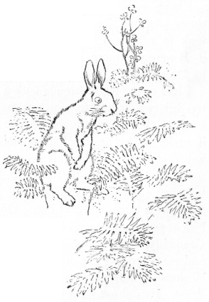 [17] This last happened only two or three times. The little ones were already wild; they had forgotten all about our first meeting, and when I showed myself, or cracked a twig too near them, they would promptly bolt into the brush. One always ran straight away, his white flag flying to show that he remembered his lesson; the other went off zigzag, stopping at every angle of his run to look back and question me with his eyes and ears.