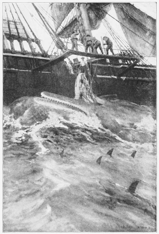 When the ship had hauled out into the stream I would sit on my favorite pile and gaze out at her and at the harbor. She usually anchored in the channel near Palmer’s Island, almost in line with Fort Phœnix on the Fairhaven side. I sat on my pile and gazed at her, looking trim and seaworthy—as she was in fact—and envied the black boys with the thin gold hoops in their ears, and dreamed dreams, as I suppose all boys do, even the most matter-of-fact of them. Those dreams of mine were to come true. Instead of the whitewashed walls of Fort Phœnix and the whitewashed lighthouse on Palmer’s Island, I saw a heaving ocean under a sunny sky, and off upon the surface of that ocean I saw feathery clouds of vapor slowly rise, like the drooping white ostrich plume on Ann McKim’s hat; and the feathery shafts of vapor drifted off and vanished, and from the masthead floated down to me the melodious cry, “Bl-o-ows!” And I roused with a start, and there was nothing before my eyes but the low whitewashed brick wall of Fort Phœnix and the whitewashed lighthouse on Palmer’s Island, and the smiling surface of the harbor, and the ship waiting there.