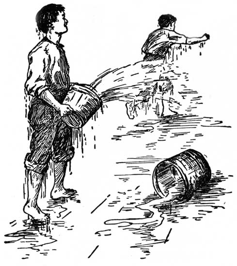 Captain Sol had all hands called; and the men came up unwillingly, and they were very cross with Captain Sol because they thought that he had called them to change the sails again. And they had been up nearly the whole of three nights and wanted to sleep. But Captain Sol[Pg 305] called them all aft, and he stood by the railing that was at the edge of the quarter deck and he made them a little speech. He said that the men must know that there was a race between the Augusta Ramsay and the Industry, and that each vessel was trying to be the first to get to the far country, where they both were bound. It was worth something to his owners to have the Industry get there first, and he would promise the crew five dollars apiece if they beat the Augusta Ramsay, even if they only beat her by an hour. And, for every day that they beat her, up to two weeks, he would promise them two dollars apiece. He didn't care about beating her by more than two weeks, because he thought that he would have his cargo aboard, all ready to carry back[Pg 306] to Boston, in that time. But there must be no skulking and no unwillingness. Anything of that kind would be severely dealt with, and he would not hesitate to put any man in irons for the rest of the voyage who didn't jump to his duty at the word.