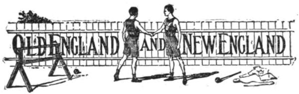 "About five to four," I answered, "but I cannot name the winner. On form Old England should pull off the 'broad jump,' the 'mile' and 'three miles,' and New England is quite sure of the 'hammer' and 'high jump.' This leaves the 'hundred' and 'hurdles,' the 'quarter' and 'half' to be fought out, although of course nothing is sure but death and taxes."