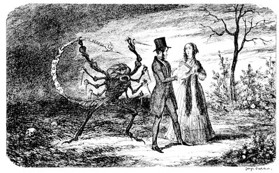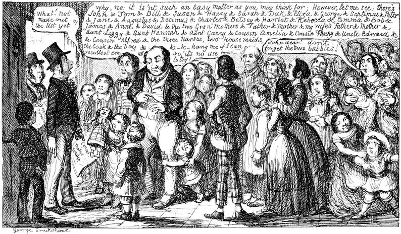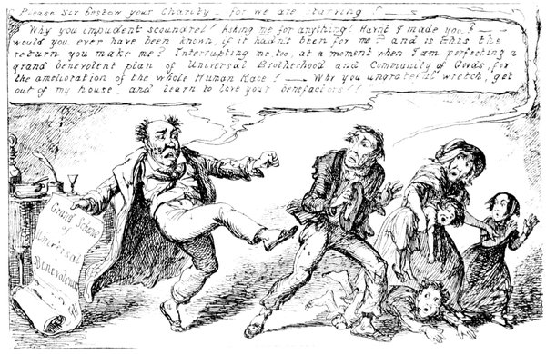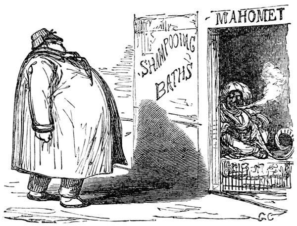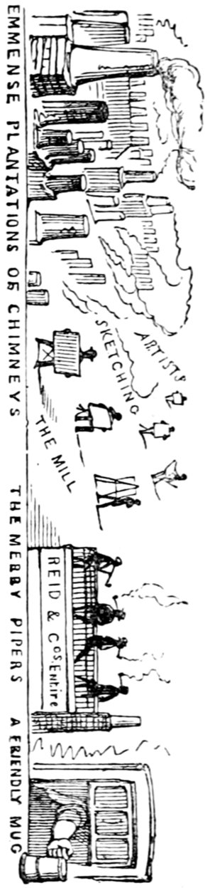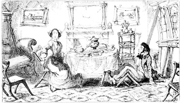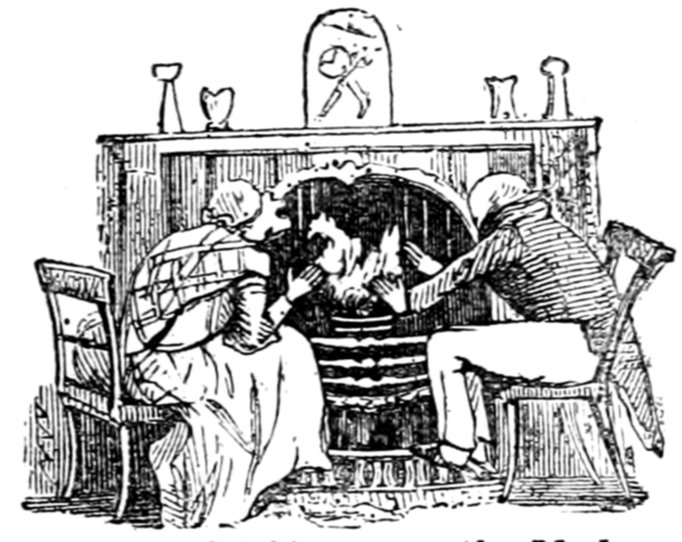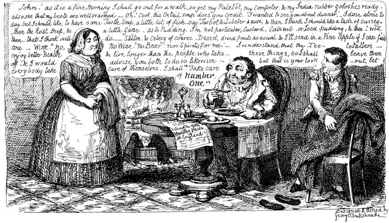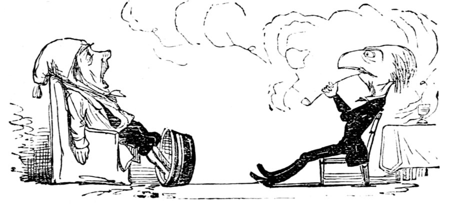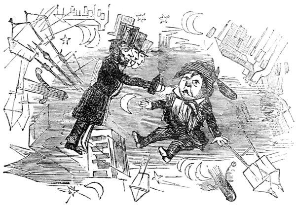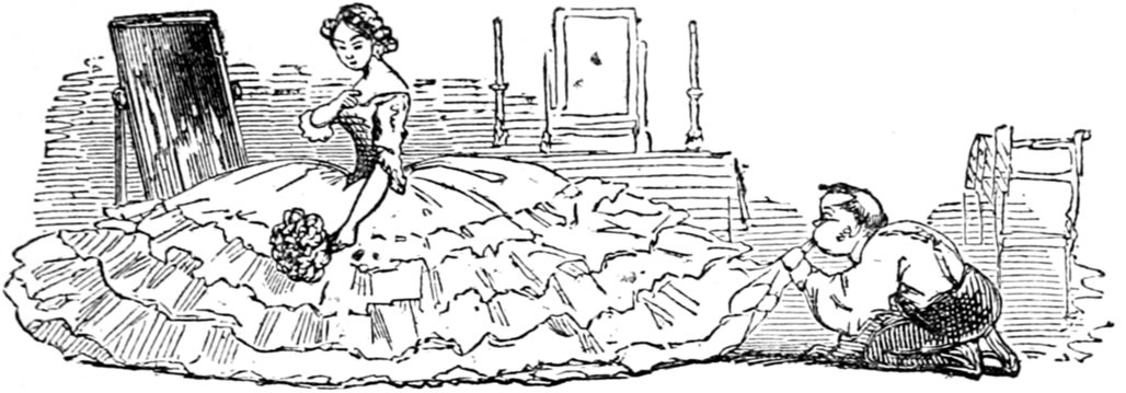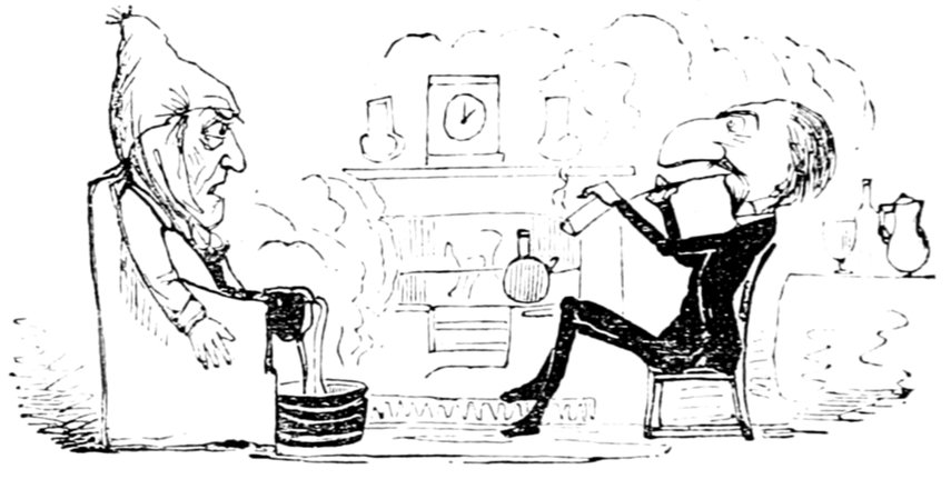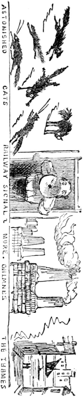 Mrs. Piper (superintending the chops and neglecting her punctuation)—"Oh dear, dear, dear! it's enough to drive anybody crazy with all the trouble I've had with the huzzies the nasty good-for-nothing, idle, lazy—the wicked presumptuous bad creatures, to think of their taking such a start. Don't talk to me, Piper; it's the fault of you men for taking their part. Can't blame them indeed for wanting to better their situations!—of course my servants were very ill used I understand your insinuations. No doubt it's a treat to you to see your poor wife made into a slave—not that there's any novelty in that I wish I was in my grave!—melted to death and getting into such a mess with the chances I have of even getting a new dress—at those dratted chops for you to guzzle. If you had the feelings of a man, you'd do something to help me. Oh! I daresay you're doing all you can—a pretty kettle of fish you're making of the Irish stew. Ah! there goes the poker on to the plates—don't tell me—you do it on purpose—you do. I didn't say you touched the poker but you do all you can to flurry me in one way or other—Tom, you naughty, unfeeling boy, how dare you join in the conspiracy against your poor mother? If your father's burnt you, it's just like him go and rub your hand with soap—though you'll be clever to find it—Yes—Mr. Piper, you're satisfied now, I hope—with your institutions and lectures and South Australia panoramas I wish Mr. Prout and all the rest of the wretches at the Polytechnic were pounded to death with sledge-hammers—putting notions of emigration into the heads of a set of brazen faces—but they've been a great deal too well treated, or they would not have had time to go to such places; and those newspapers talking about their rights and freedom if they'd minded their work they wouldn't have had time to read 'em. In my poor dear mother's time, no servant could get a place who knew how to read. Ought to be treated like human beings? a pretty story, indeed! I know what you mean Piper you needn't try to keep your gravity—but they were always thinking of husbands and settling in life or some such depravity.