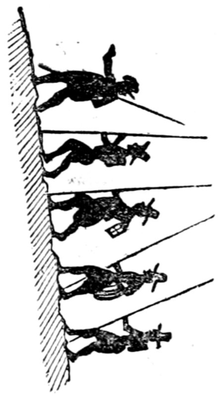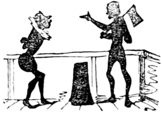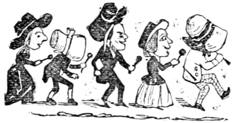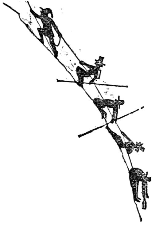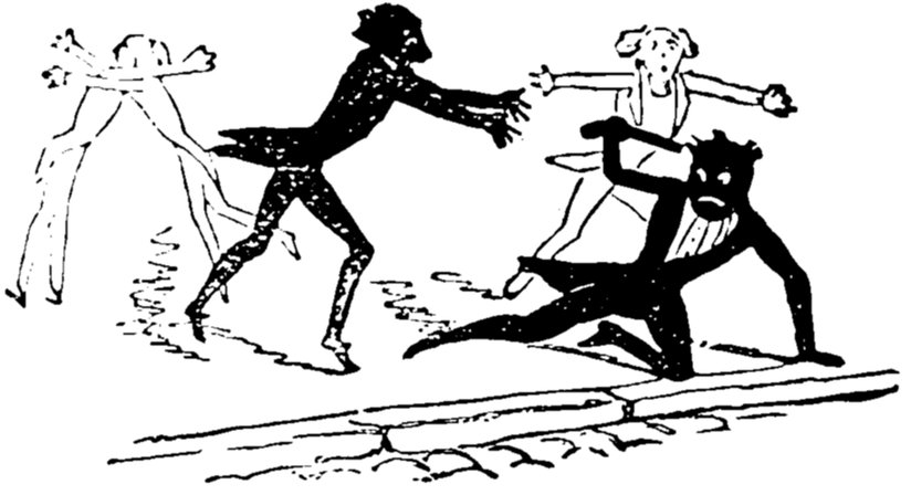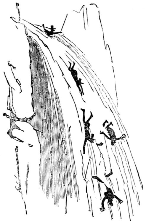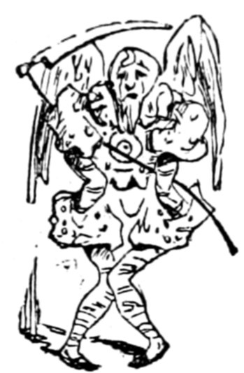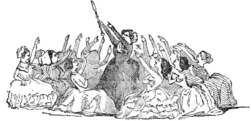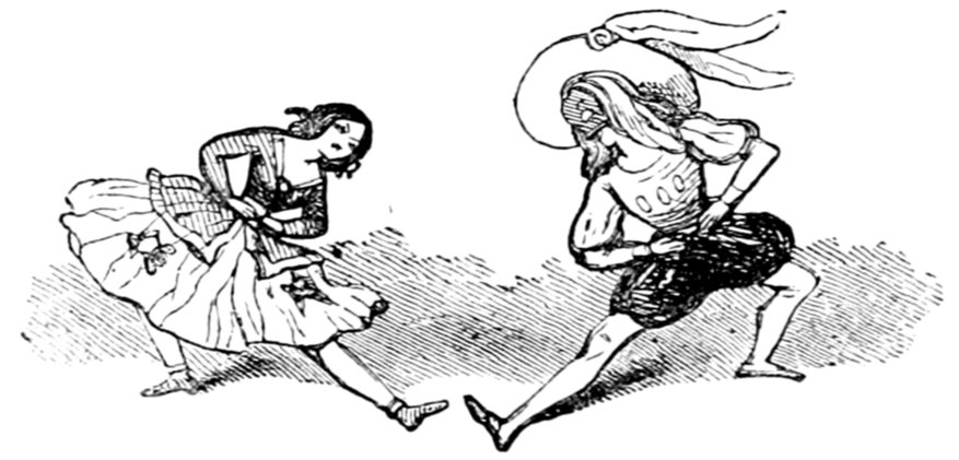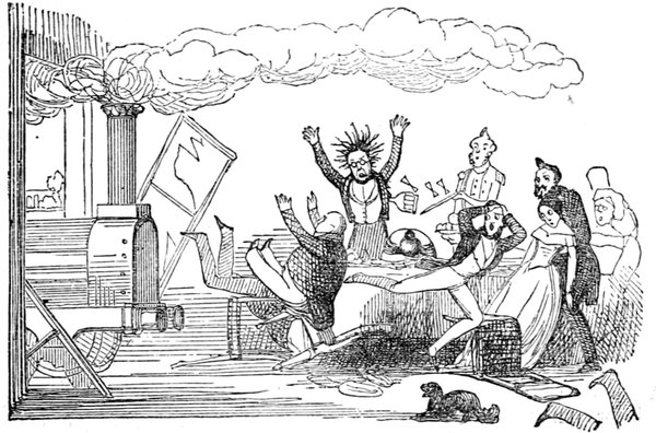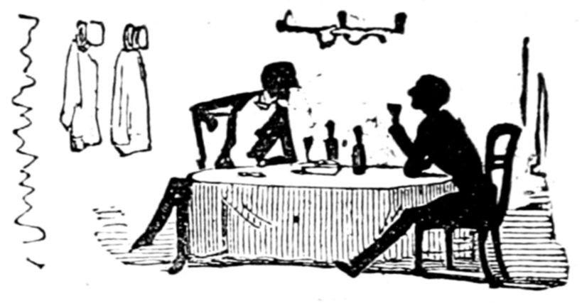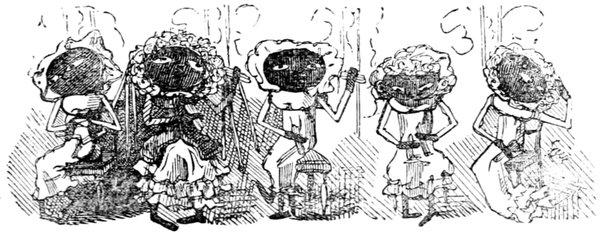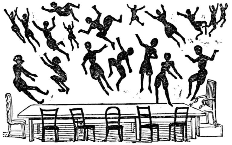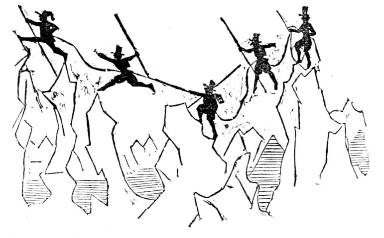 This gentleman is supposed to be 418conducting himself in this remarkable manner from an excess of enjoyment and high spirits; the French, generally, being supposed to be a gay and light-hearted people. Does a close inspection of the expression of the gentleman's countenance, in the height of his hilarity, warrant either supposition? Would it not rather be thought that he is performing a terrible act of penance for some sin that can never be wholly expiated?