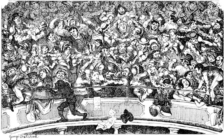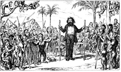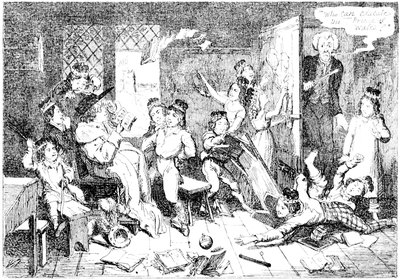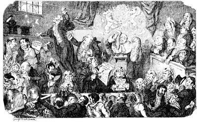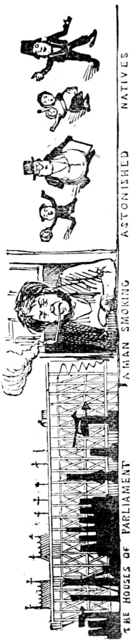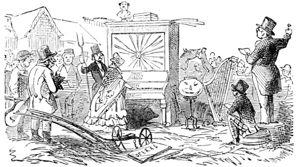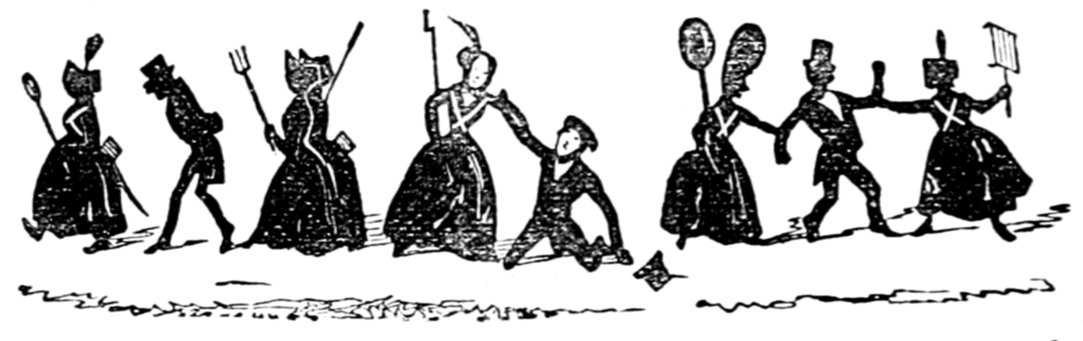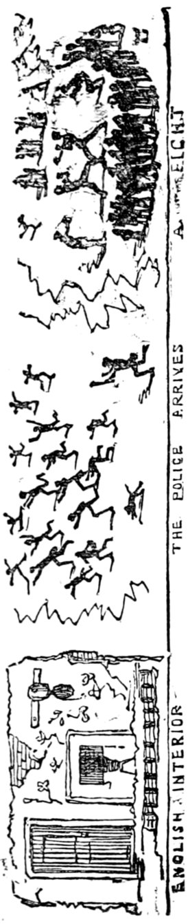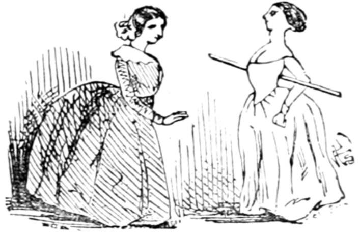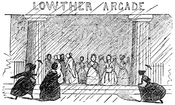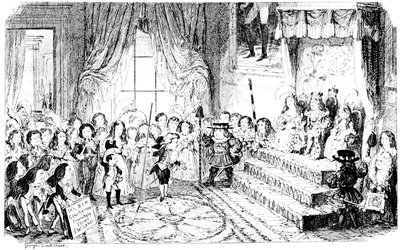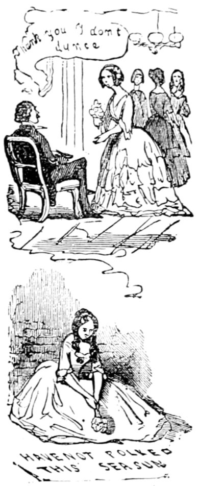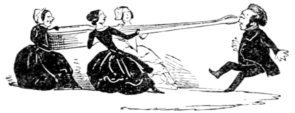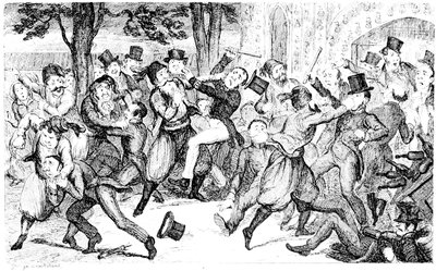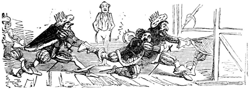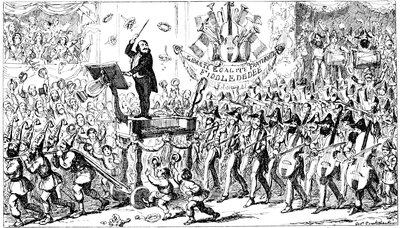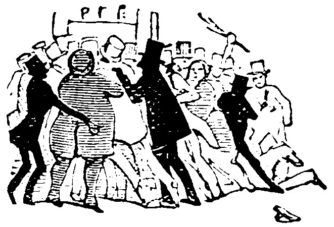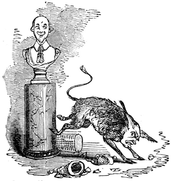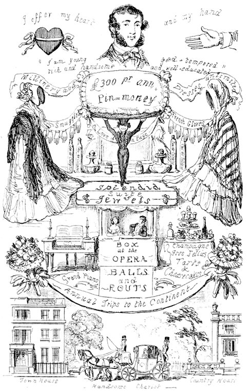 Ladies, then, angels, goddesses ("Oh!" from an elderly bachelor, who was removed by the police), for the thrilling position in which I am placed, how can I be sufficiently grateful to that glorious reform in our electoral system, which has partially recognised the true position of lovely woman? ("Partially!" in a tone of sarcasm, from a member of Mr. Screwdriver's committee). My honourable and gallant friend objects to the adverb. I say partially, for by admitting the ladies to the Franchise with the gentlemen, they are but recognised as equals, instead of superiors. (Great sensation.) Yes, ladies, and it shall be my earnest endeavours as your representative ("Yah!" and "Not yet!" from Mr. Screwdriver). My honourable and gallant friend observes "Not yet." It is true I have a formidable rival to contend with. The charms of his person, (screams, and "the Old Fright!") his known politeness, above all his taste in dress (here the laughter and clapping of kid gloves rendered the speaker inaudible for some moments)—compared with such claims, mine are worthless ("Do listen!" and "The Duck!"), extending no farther than a willingness, I may say a downright anxiety, to die in the cause of the fair creatures, who, I believe I may say, have done me the honour to elect me as their champion ("Yes! Yes!") With the ladies' voices in my favour, I believe I need not fear those of the gentlemen being exerted against me. (Cries of "We should like to see them," "Speak up, Alfred, do," "I'm ashamed of you," &c.) I thank you, gentlemen—or rather I do not thank you; I honour you for your—may I say obedience? ("Oh yes!" in a rapturous tone, from the engaged gentlemen), though, after all, I don't see how you were to help yourselves. (Great applause, and numerous bouquets thrown.)