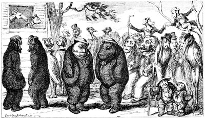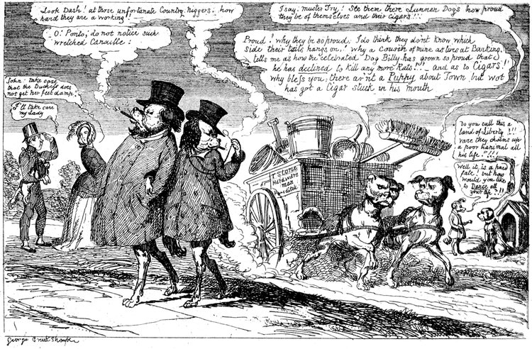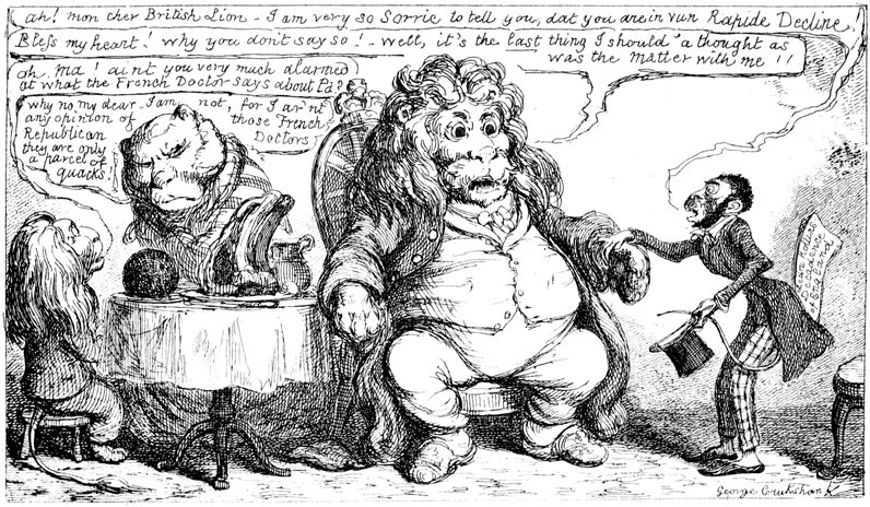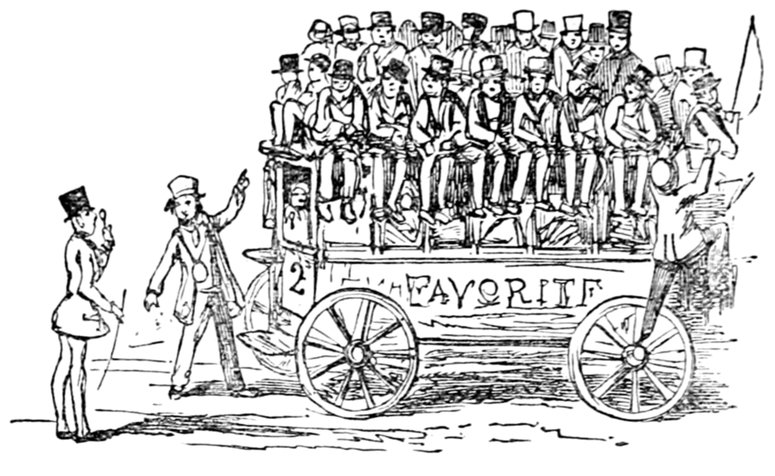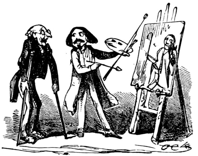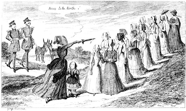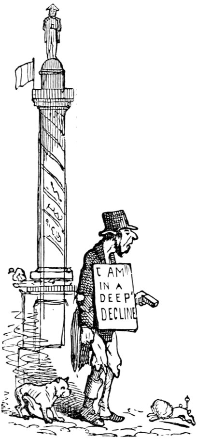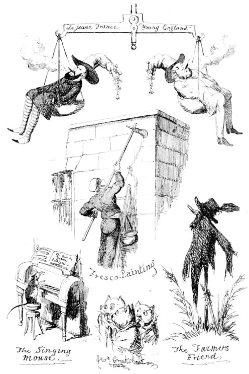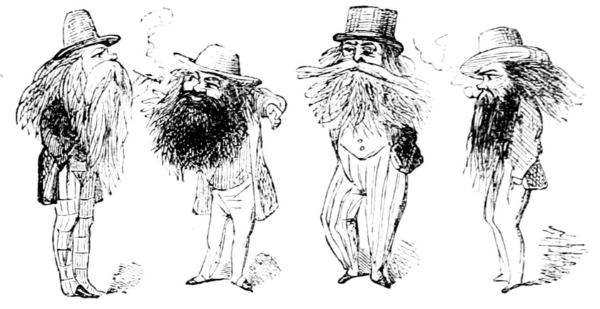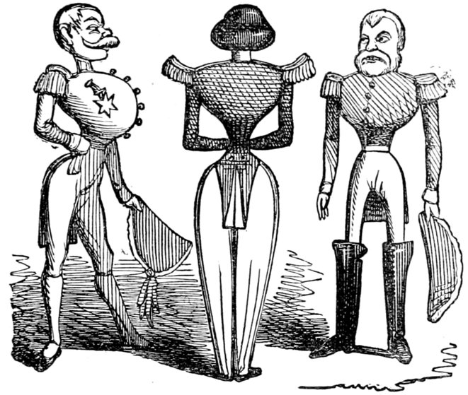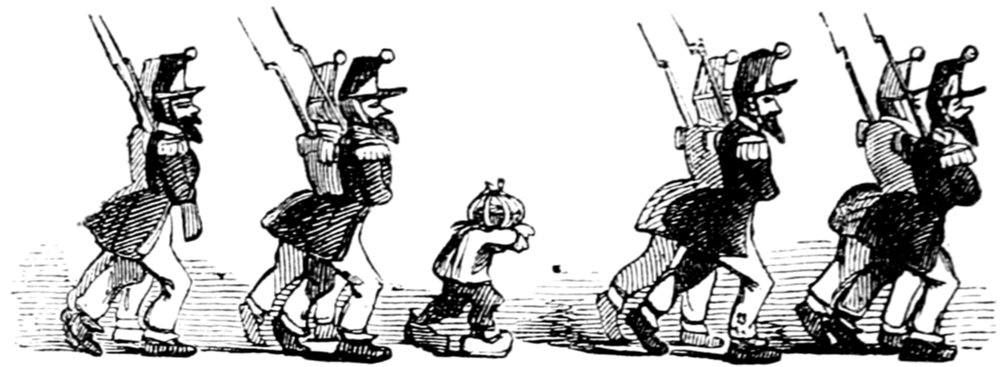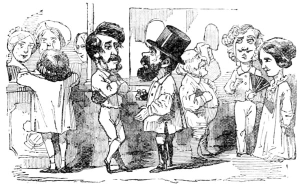 In the first place, I should like to know what they mean by wearing those enormous fur hats? They may be an intelligent people. All I know is—I never saw such a set of muffs as they look in all my life. And such tight trousers! reducing the legs of Young France to next to nothing, and presenting an appearance of top-heaviness that is absolutely uncomfortable to contemplate. They talk of their stable government! The heads of the nation could never have been in a more tottering condition than they seem now—and I don't see how things can possibly go on long on such a slender footing.