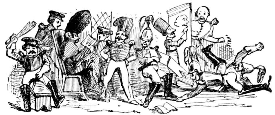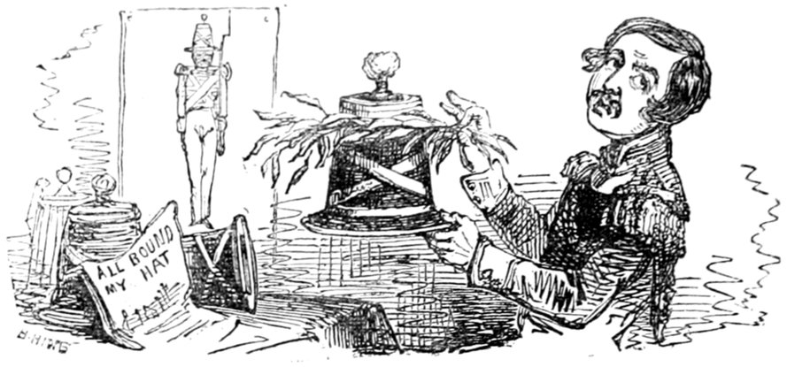 Sir Charles. I am for keeping up a standing army, to consist entirely of regiments of horse-guards, composed exclusively of officers. (Immense sensation.)