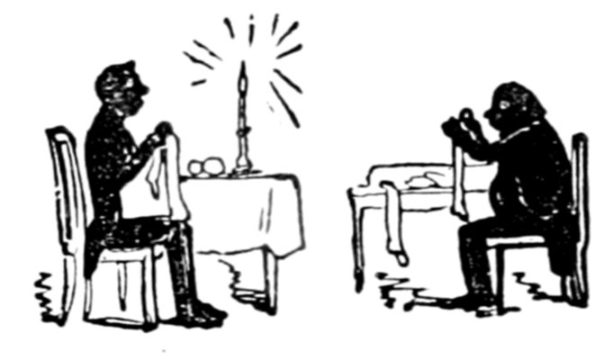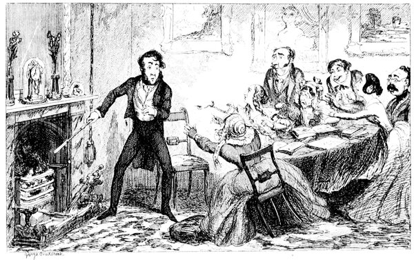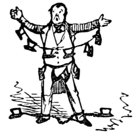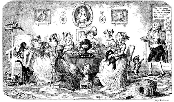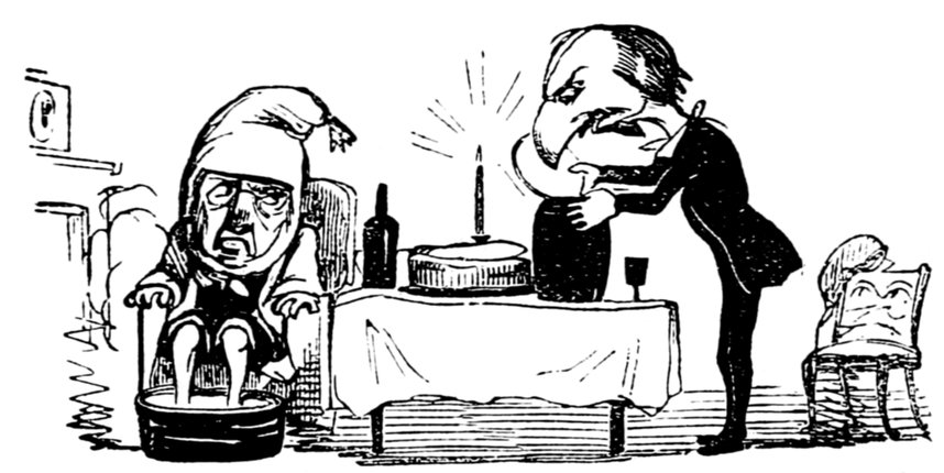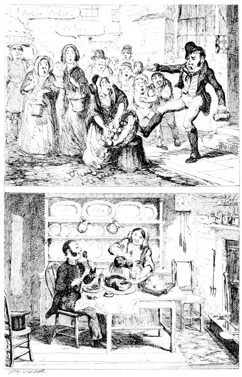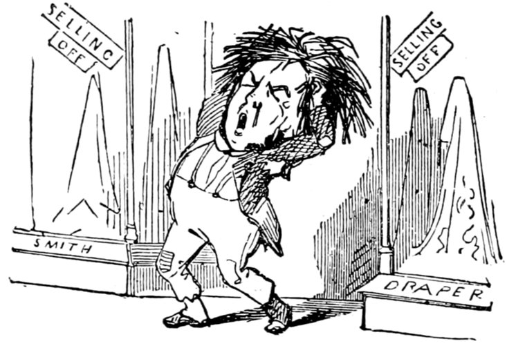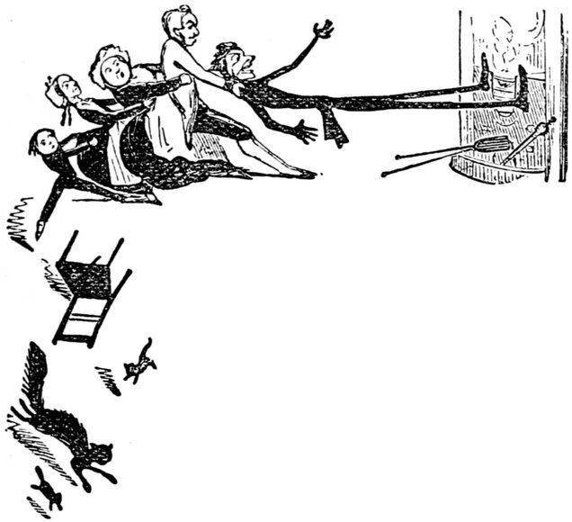 427"Arabella and Jane you idle things don't stand staring there, but go and lay the cloth before your father begins to swear. All the tumblers are broken? Well, to be sure, I might have expected that but I'm astonished at you Arabella for daring to tell me it was the cat. If it was that minx, Jemima—yes, I see very well, Mr. Piper that we don't get on as well without her as if I wanted her to go, the viper! when she knew the whole comfort of the family depended on her staying to be off to Australia the ungrateful thing she deserves flaying. With the beautiful kitchen she had only she never took a pride in it let alone seven pounds a year and her tea found with sugar beside in it. But of course madam must have a farm and want to be some scamp's wife—never thinking what I've to get through with my two poor girls to settle in life. Jane bring a dish this minute do. What! do you mean to say there's only one and that's cracked, on the shelf? Well, I've done all human nature can do, Mr. Piper you may get your dinner yourself. If the chops are black I can't help it well you needn't mention it—I see—if there's one on the floor you may pick it up. Ah! I knew how it would be. The gridiron's tumbled over with what I've to go through, how can you expect me to attend to it? I've not been used to this sort of thing the chimney's on fire and there's an end to it. The house must be burnt down. Oh yes! call the police, but you may call for ever if you find a policeman now all the servants have gone to Australia, all I say is you'll be clever."