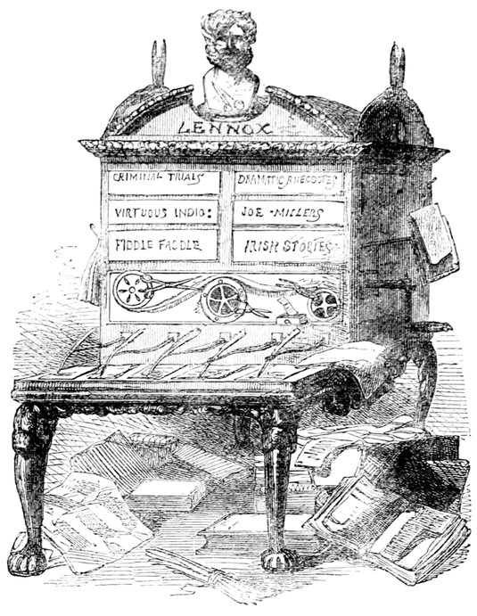 J.—Your offer has had our most careful consideration. We fear that a novel in ten books, each containing eighty chapters, to be published at the rate of a chapter per year, will scarcely suit our publication. It would be difficult to sustain the interest for so long a period and at such considerable intervals.