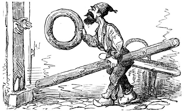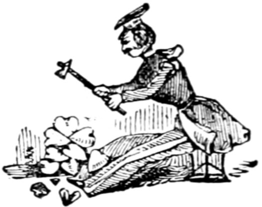 This is the baker! The circular article he holds in his right hand is a loaf! So is the longitudinal ditto in his left! I am at a loss to account for the singular expedients resorted to by the French for making their bread. It is true that one species possesses the great recommendation, to the heads of families, of going a very long way. But, on the contrary, the other is a description of food which the smallest child could get through in no time.