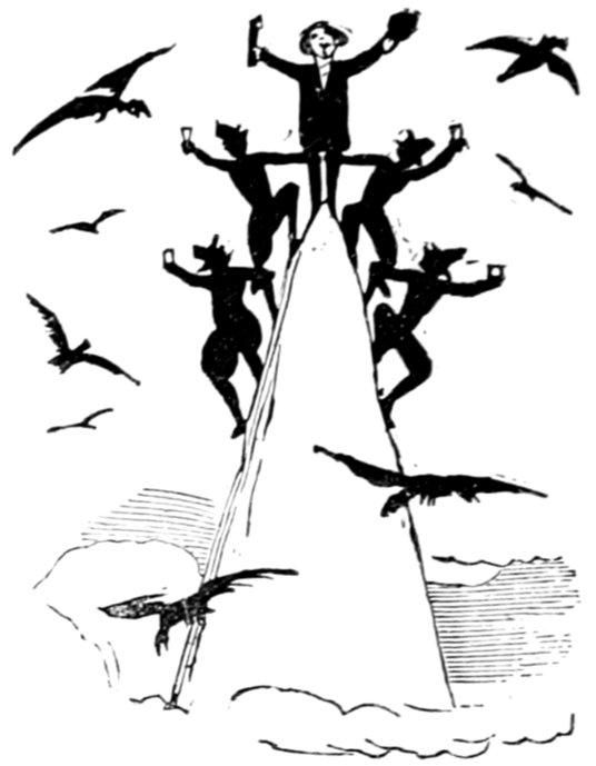 One of the peculiar advantages of the Electro-Intellecto-Mesmeric Railroad consists in there being no occasion for steam, the power of raising the wind by the most active and continued puffing being considered sufficient to carry all matters to the terminus of popularity.