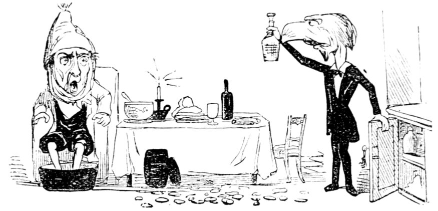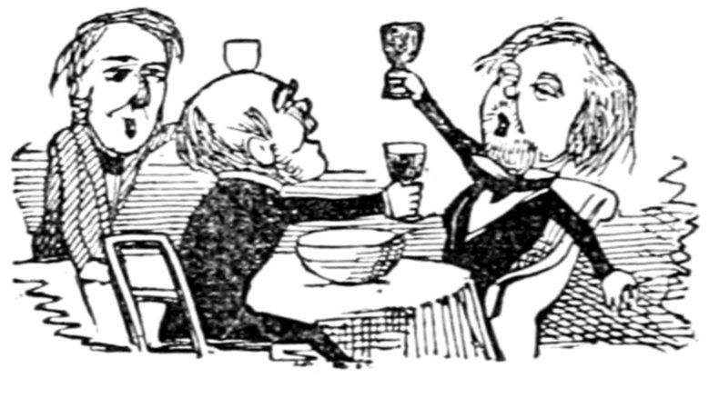 Champagne was the first to rise, in a state of great effervescence. He declared that he was frothing over with pure indignation at the idea of wine being excluded from the social board; and, indeed, he found it impossible to preserve the coolness which ought to belong to him. He was not one to keep anything long bottled up—("Hear," and a laugh);—indeed, when he once let loose, out it must all come: and he did say that the temperance movement was playing Old Gooseberry with him in every direction.—(Cries of "Shame!" from the Genuine Walker.)