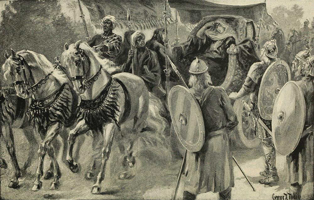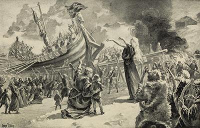 Glad were the hearts of all the vikings as they heard, and with one accord they shouted loudly: