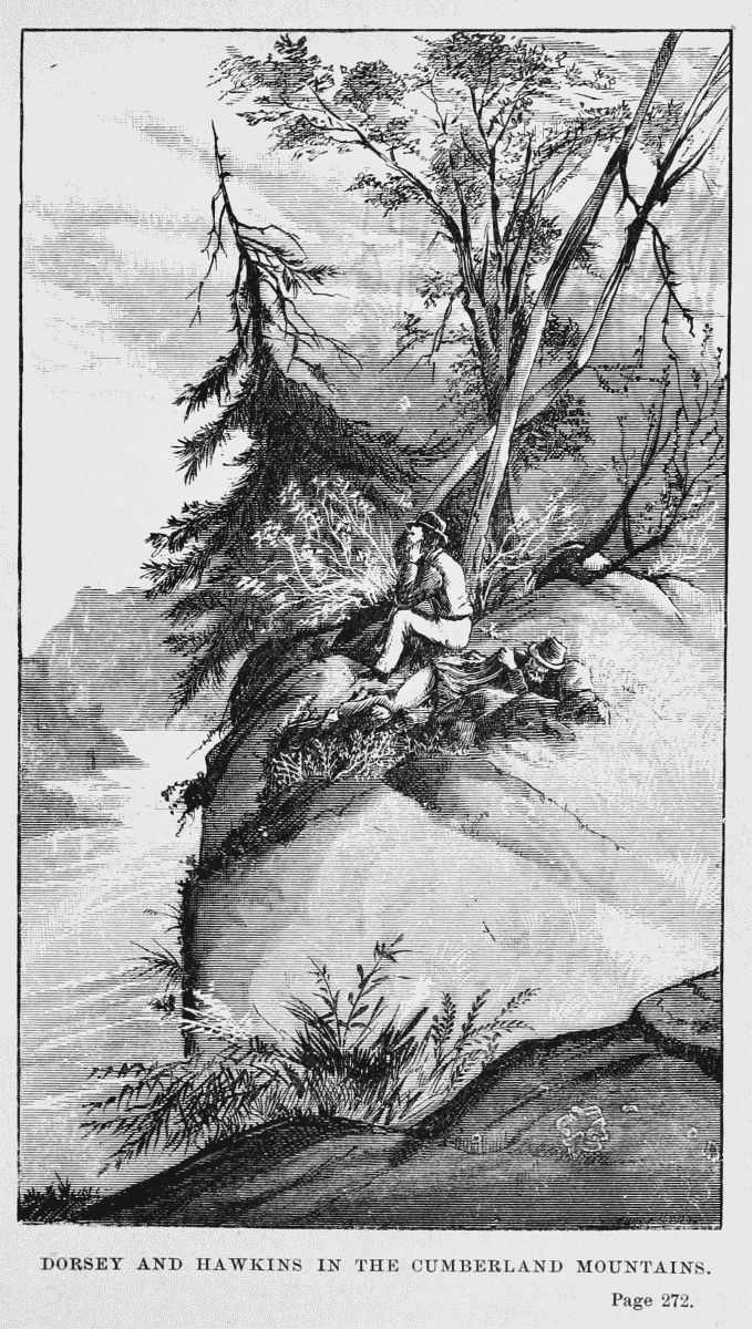 "The mode of operation proposed was to reach a point on the road where they could seize a locomotive and train of cars, and then dash back in the direction of Chattanooga, cutting the telegraph wires and burning[342] the bridges behind them as they advanced, until they reached their own lines. The expedition consisted of twenty-four men, who, with the exception of its leader, Mr. Andrews, and another citizen of Kentucky,—who acted on the occasion as the substitute of a soldier,—had been selected from the different companies for their known courage and discretion. They were informed that the movement was to be a secret one, and they doubtless comprehended something of its perils, but Mr. Andrews and Mr. Reddick alone seem to have known anything of its precise direction or object. They, however, voluntarily engaged in it, and made their way, in parties of two or three, in citizen's dress, and carrying only their side-arms, to Chattanooga, the point of rendezvous agreed upon, where twenty-two out of the twenty-four arrived safely. Here they took passage, without attracting observation, for Marietta, which they reached at twelve o'clock on the night of the 11th of April. On the following morning they took the cars back again towards Chattanooga, and at a place called Big Shanty, while the engineer and passengers were breakfasting, they detached the locomotive and three box-cars from the train and started at full speed for Chattanooga. They were now upon the field of the operations proposed by the expedition, but suddenly encountered unforeseen obstacles. According to the schedule of the road, of which Mr. Andrews had possessed himself, they should have met but a single train on that day, whereas they met three, two of them being engaged on extraordinary service. About an hour was lost in waiting to allow these trains to pass, which enabled their pursuers to press closely upon them. They removed rails, threw out obstructions on the road, and attained, when in motion, a speed of sixty miles an hour; but the time lost could not be regained. After having run about one hundred miles they found their supply of wood, water, and oil exhausted, while the rebel locomotive which had been chasing them was[343] in sight. Under these circumstances they had no alternative but to abandon their cars and fly to the woods, which they did, under the orders of Mr. Andrews, each one endeavoring to save himself as best he might.