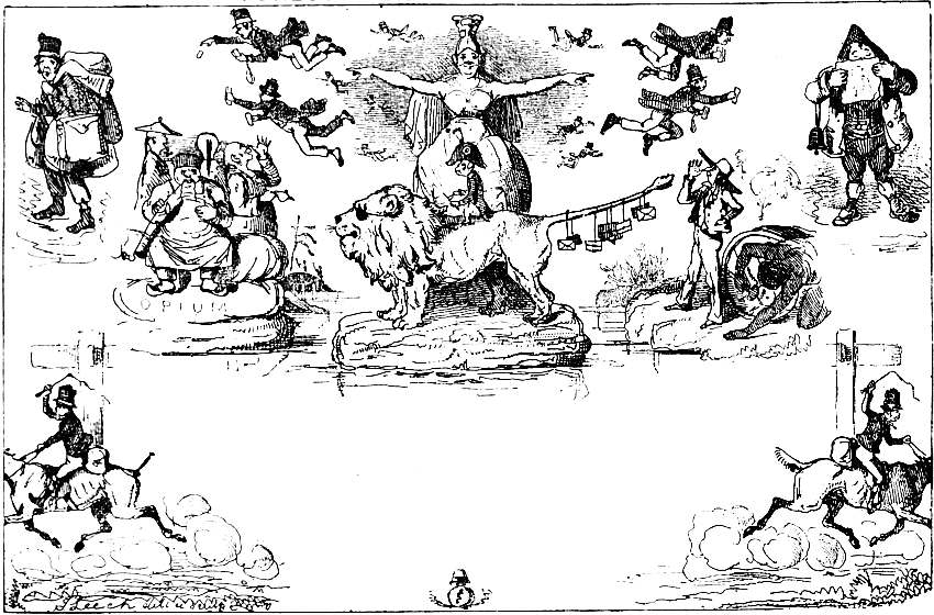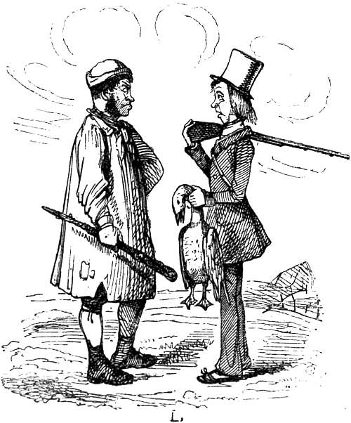 No doubt the work he undertook for Bell’s Life in London, a long-established and long-discontinued paper, in which sport of all kinds was the most prominent feature—and which occupied much of Leech’s time in his youthful days—contributed to the creation of a taste and love for field sports that always distinguished him. Quite a band of comic artists, including Cruikshank, Kenny Meadows, “Phiz,” Seymour, and Leech, contributed sketches illustrative of a variety of subjects by a variety of authors; Leech’s work being easily distinguishable from that of his brethren of the pencil.