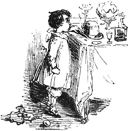 These efforts show but one side of Leech’s many-sided power. It was in “The Children of the Mobility,” a satire on a production just then published, in which the children of the nobility were put before the world in all the splendour of their aristocratic surroundings, that Leech’s genius had full play, the little Duke affording an instructive contrast to the street arab, and the shivering, half-naked beggar-girl becoming infinitely pathetic in her rags. This work was executed in lithography, consisting of seven prints; and though, as works of art, they bear no comparison to the wood-drawings of a later time—they are not even so good as the “Fly-Leaves” published at the Punch Office later on—still, comparatively imperfectly as they are rendered, they show the artist’s intense sympathy with suffering childhood, as well as enjoyment in the games and “larks” by which the sufferings are for a time at least forgotten.