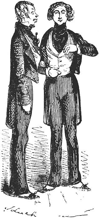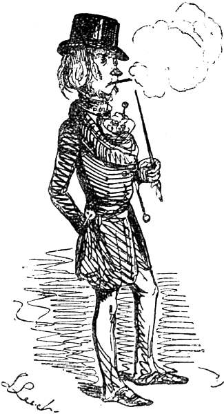 The “Comic English Grammar” was a work full of pleasant humour, charmingly illustrated by Leech 256 “with upwards of fifty characteristic woodcuts.” It is curious to observe in these drawings the contrast that they afford to the artist’s later and more perfect work. There is a timidity, and what we call a hardness, from which the sketches in “Pictures of Life and Character” are entirely free; the general drawing, too, is faulty, but the humour and character are all there.
