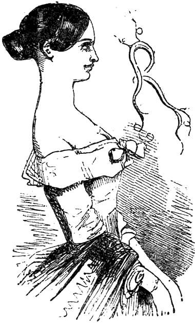 The first illustration, given above, is from a ballad called “Billy Taylor,” popular in my young days, in which Billy’s true love—with the reluctance to part 257 from him common to persons suffering from that passion—disguises herself as a man before the mast, and shares the dangers of the sea with her sailor-lover: