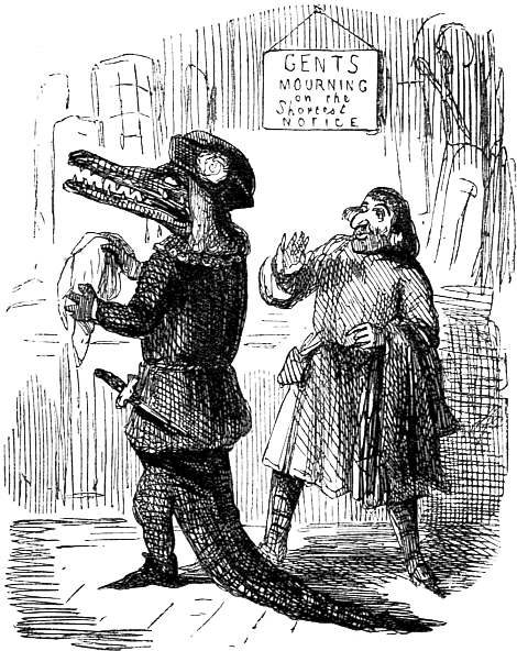 The savage and hypocritical character of Richard III. afforded Leech an opportunity for satire in his design of that monarch, when still Duke of Gloucester, in the shape of a crocodile shedding tears for the death of the two Princes in the Tower.