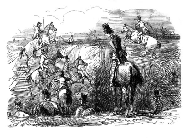 I think it was Dickens who said that a big cock-pheasant rising in covert under one's nose was like a firework let off in that locality. Elsewhere we have Leech's rendering of the idea.
