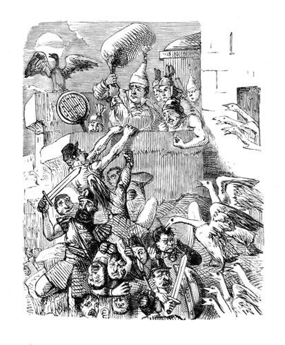 "Poor John! Thy German brethren, too, stand in the shape of a weeping willow at thy grave, for our locks are turned to mourning branches that droop down over thy simple cross. Ungrudgingly we behold thy glory, thy 'like nature' which stirred up the foul carp-pond of life. We remember thy fox-hunting and angling gentlemen, thy ladies, the pretty ones and the declining, thy blue stockings, thy gentlemen, thy volunteers, thy sportsmen, thy Flunkeiana, and thy immortal Mr. Briggs, this pearl of English bonhommie. Mr. Punch, too, whose greatest ornament thou wert, sits mourning on thy tomb. He has cast off his merry Punchinello costume, and is nothing but a sorrowing old man. Farewell, merry John, thou boy of endless good-humour.
