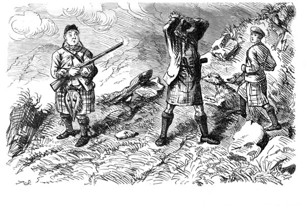 I have said that McIan was a Scotchman, a Highlander of the clan McIan, and a worshipper of Charles Stuart, whose usual cognomen, the Pretender, I should have been sorry to have used in the presence of my Jacobite friend. As Leech left the room to go to his "grind," as he called his woodwork, McIan entered, and we were discussing Leech's[Pg 8] prospects when McIan's servant—an old, hard-featured Scotchwoman—hurried into the room, and, in an awe-stricken voice, said: