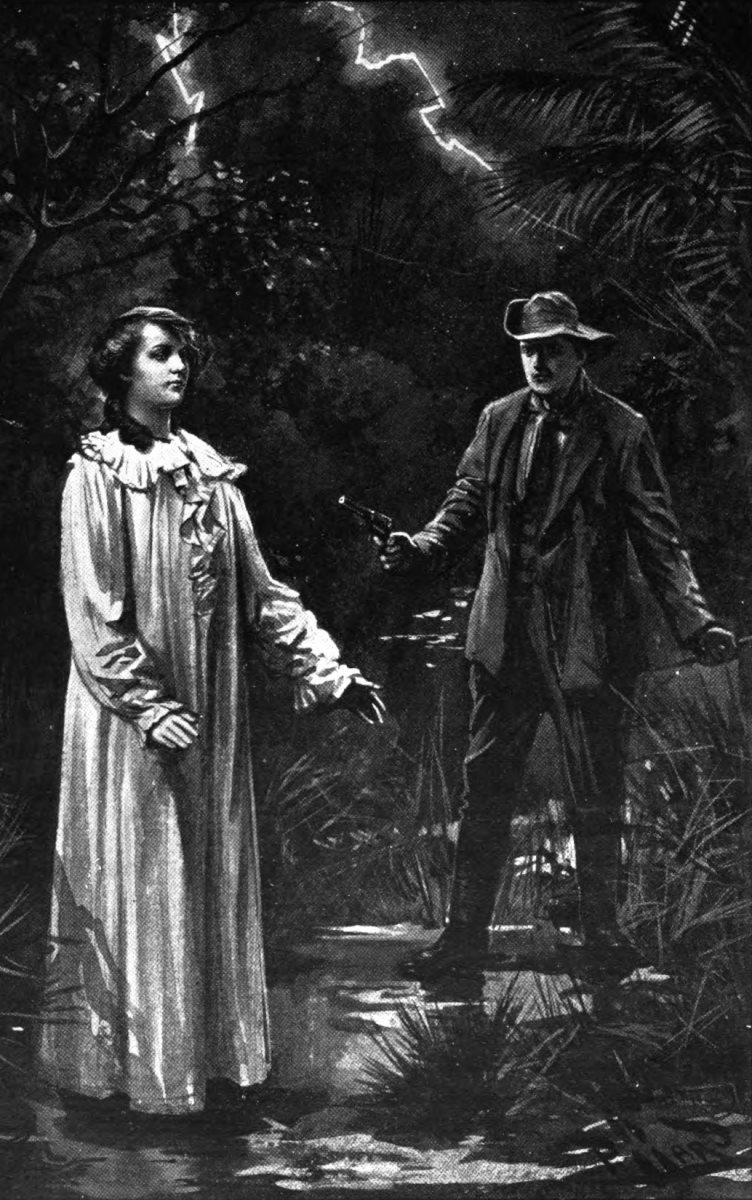 the body of the Pure One pass into this foul wizard’s hands after all? In another moment all would be over. I felt my senses going, when I saw that the negro was trying to speak, but Kahikatea’s hand was still too tight on his throat. Not until it relaxed under the influence of the poison could he speak the words which would take command of our failing wills. Then, when I saw that, a lightning thought flashed through my mind: the commanding voice should be mine. I was going fast, but I still had strength enough to cry: “Kahikatea! my voice is the only thing! You cannot let go! Kill him! Kill him! You cannot let go!”