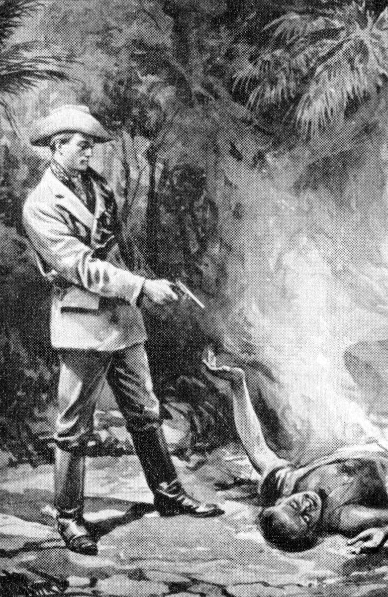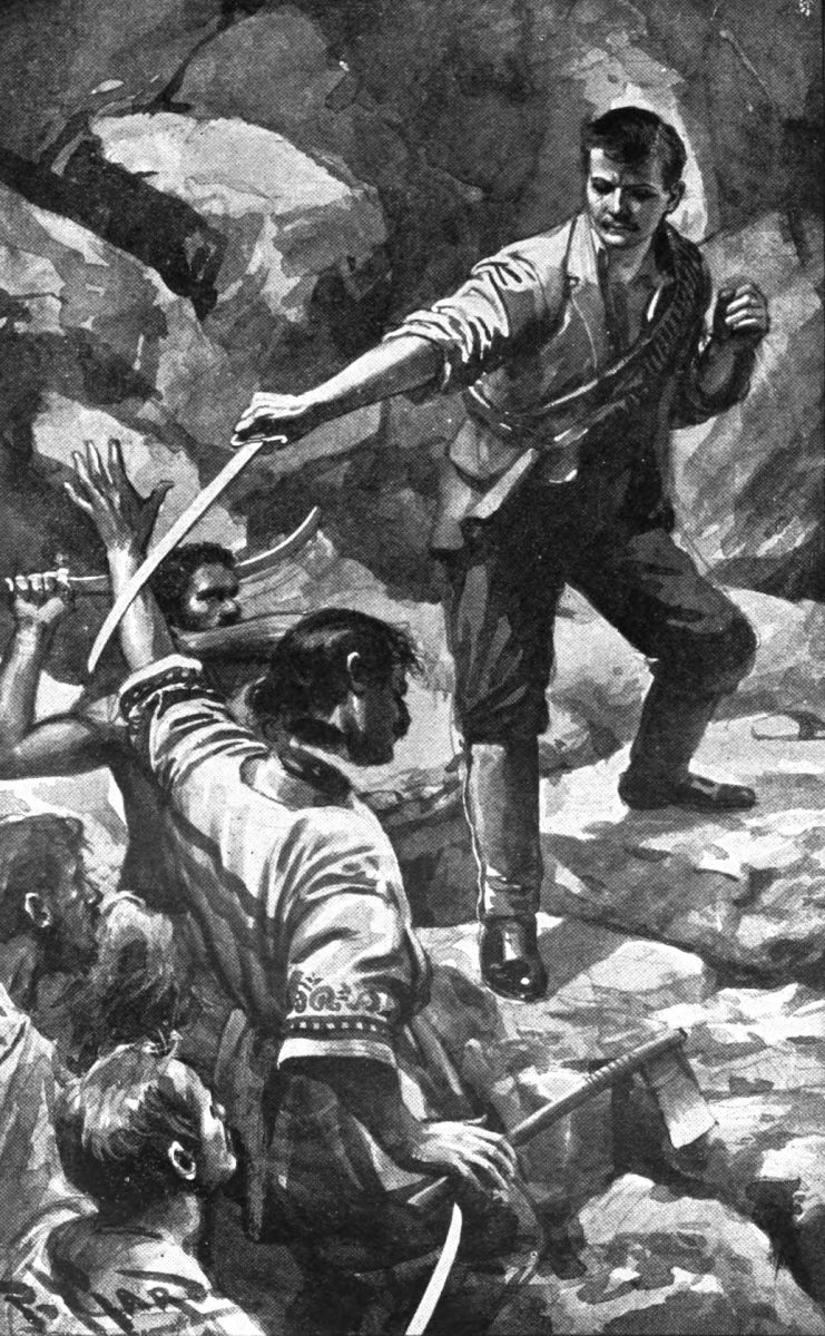 Presently the fingers drew forth a slender thing—a small, reed-like dagger, only large enough to give a needle’s prick, but I knew it was poisoned. With a quick shout of “Take care!” I darted forward just as the negro was raising his arm. I caught him by the wrist, but, with a quick side twist, he wrenched loose, scratching my skin with the cursed thing as he did so. Then, swift as lightning, before I could intervene, he raised his arm again, and drove the point into Kahikatea’s shoulder.