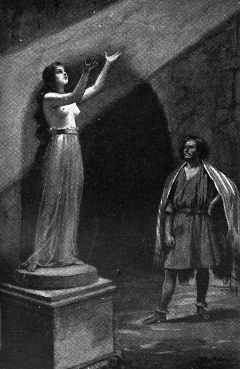 As I made my way among the fragments, I picked up the golden circlet, and, bending down, gently placed it upon Hinauri’s brow. At once the prophecy came to my mind—the prophecy she had read after solemnly identifying herself with the statue: “Thou, Hia, shalt return at the dawn of a new age, but ere the sun shall have shone twice upon this, thy crown, thou shalt withdraw into the sky.”
