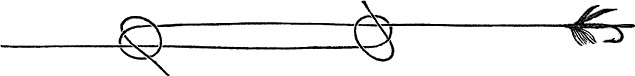 In making up a cast of flies, have no loops of any kind, excepting the one by which the cast is attached to your silk-and-hair line. The water-knot is so simple and neat, that it is the best for the purpose of fixing on the tail-fly, which, by the way, should be the heaviest of those you are about to use, if there is any difference between them. In case our readers don't know the water-knot, we give an illustration which explains itself—