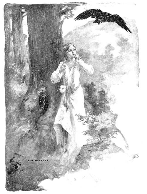 For long after his going, absolute silence held the glade; then seemingly out from the precipice emerged a man who walked straight to the basket and lifted it so easily as to convince a grave crow—the sole onlooker—that here was a mortal of wondrous strength. The new-comer moved in long strides which did not belie the mighty proportions of thigh and limb. Over his broad shoulders, scarcely bowed with fast and age, hung a brown sheepskin jerkin, sewed with thongs, descending below the knees and bound with a bit of rope. Feet, neck, arms, were absolutely bare, hairy, and sinewy. How the face looked one might not tell, all hidden as the features were behind the unshorn snow-white hair and beard which veiled almost everything save two marvellously lustrous blue eyes.