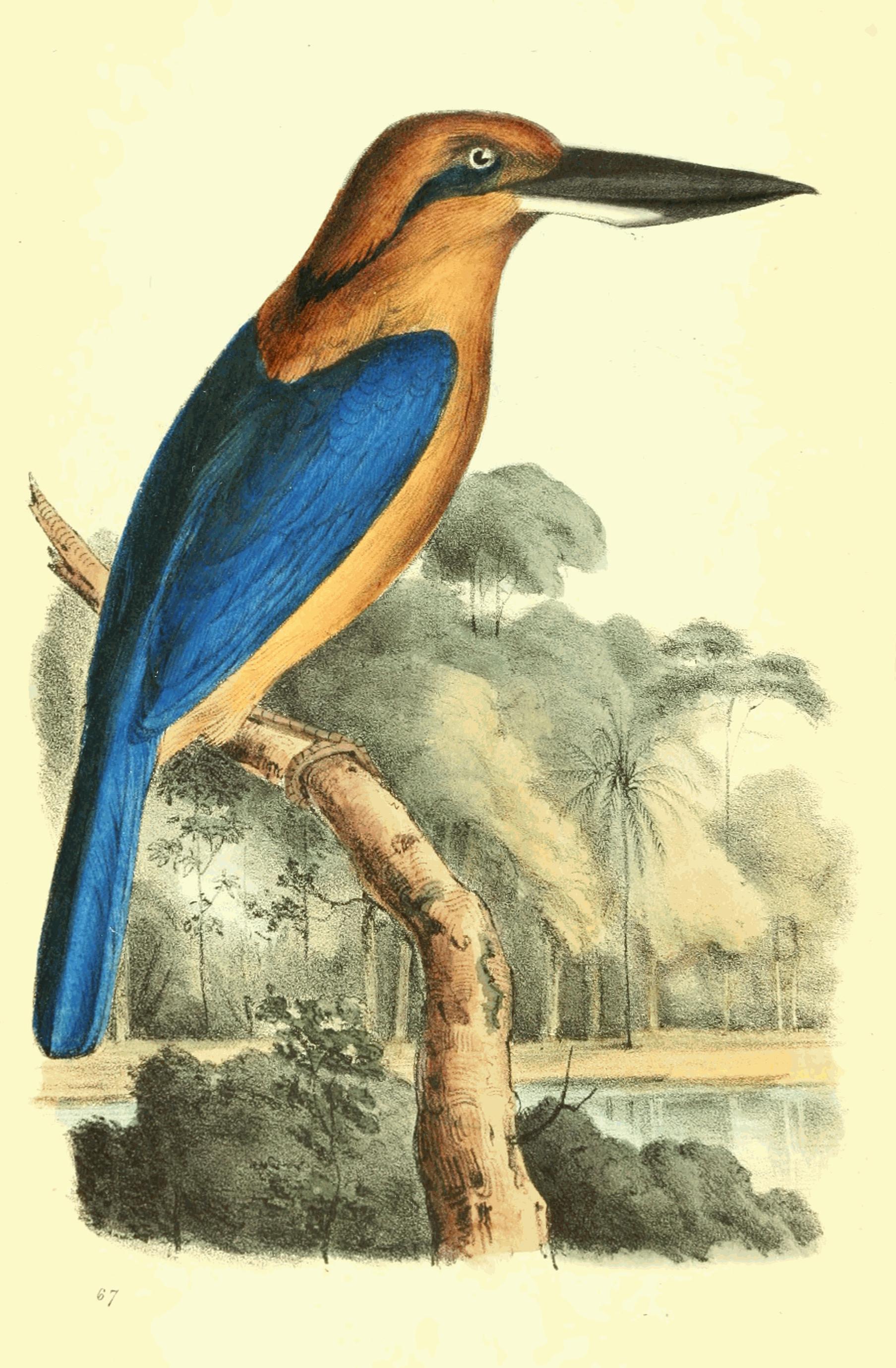 The two extreme points of difference in the Linnæan kingfishers, are seen in the Alcedo Ispida, and A. gigantea; the last of which has been made into the genus Dacelo. It will, nevertheless, be found, that from among the birds left in the old genus, there are a great number, (of which, indeed, this bird is a striking example,) which are much nearer allied to Dacelo than to Alcedo, where they now stand. It will appear, therefore, more natural to consider Halcyon and Dacelo as one genus—which may be called by either name, but which must be distinguished by the characters herein given to Halcyon, inasmuch as the generic definition of Dacelo (founded on one bird) will be found too restricted to comprehend all.