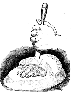 [11] The cyanide cake is made by pouring plaster of Paris into a mould of proper size and imbedding in it before setting a number of lumps of cyanide of potash.