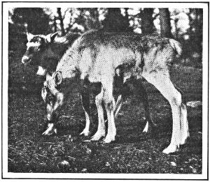 The Osborn caribou is a grand animal, every way considered. The white Peary caribou, of Ellesmere Land, is very small, its head is more deer-like than that of any other caribou, and it looks like a misfit white deer with imitation caribou antlers upon its head. Unlike all other members of the Deer Family, the female caribou has horns; but they are small and weak.