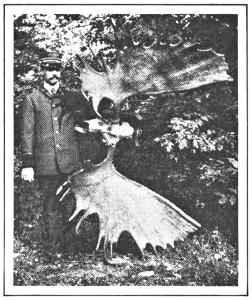 We must admit that in eastern captivity the moose cannot thrive anywhere south of Canada. The climate of New York city is like poison to moose, caribou and antelope. The salt-laden rains of winter, at 32° Fahrenheit are to blame. In New Brunswick, through wise laws rigidly enforced, (as a rule) the moose are increasing, even though hunted every year. In Maine, moose-hunting has been stopped. The great State game preserve in northern Minnesota contains many hundred moose, quite well protected. Strangest of all, there now are hundreds of moose in northwestern Wyoming, where the species long has been absolutely protected, and there are about 700 in the Yellowstone Park.