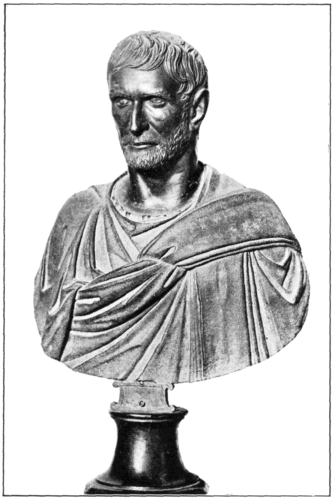 Then into his life at this time came an influence which helped to shape his character, but had nearly wrecked his fortunes. Brutus, fresh from Caesar's murder, was at Athens, residing, as we should say, in his old University, and drawing to himself the passionate admiration of its most brilliant undergraduates; among the rest, of the younger Cicero and of Horace. Few characters in history are more pathetically interesting than his. High born, yet disdainful of ambitious aims, irreproachable in an age of almost universal profligacy, the one pure member of a grossly licentious family, modest and unobtrusive although steeped in all the learning of old Greece, strong of will yet tolerant and gentle, his austerity so tempered by humanism that he won not only respect but love; he had been adored by the gay young patricians, who paid homage to the virtue which they did not rouse themselves to imitate, honoured as an equal by men far older than himself, by Cicero, by Atticus, by Caesar. As we stand before the bust in the Palace of the Conservators which preserves his mobile features, in that face at once sweet and sad, at once young and old, as are the faces not unfrequently of men whose temperaments were never young—already, at thirty-one years old, stamped with the lineaments of a grand but fatal destiny—we seem to penetrate the character of the man whom Dante [13] placed in hell, whom Shakespeare, with sounder and more catholic insight, proclaimed to be the noblest Roman of them all: