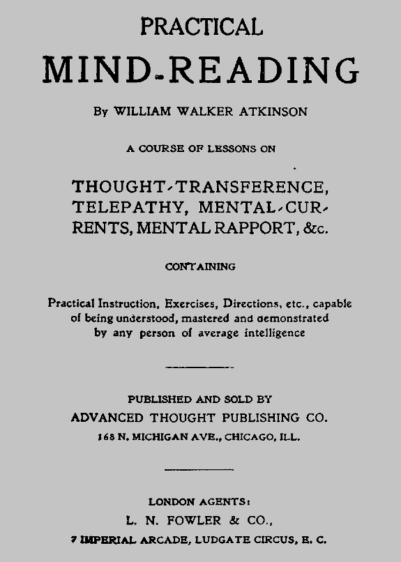 Only a few years ago the general public was in almost total ignorance of the great truth of Thought Transference, Thought Projection, Telepathy, or Mind Reading. It is true that here and there were to be found a few scientists earnestly investigating and eagerly uncovering the hidden truths concerning the subjects. But the mass of the people were either entirely ignorant of the subject, or else were intensely skeptical of any thing concerning the matter, laughing to scorn the daring thinker who ventured to express his interest or belief in this great scientific phenomena.