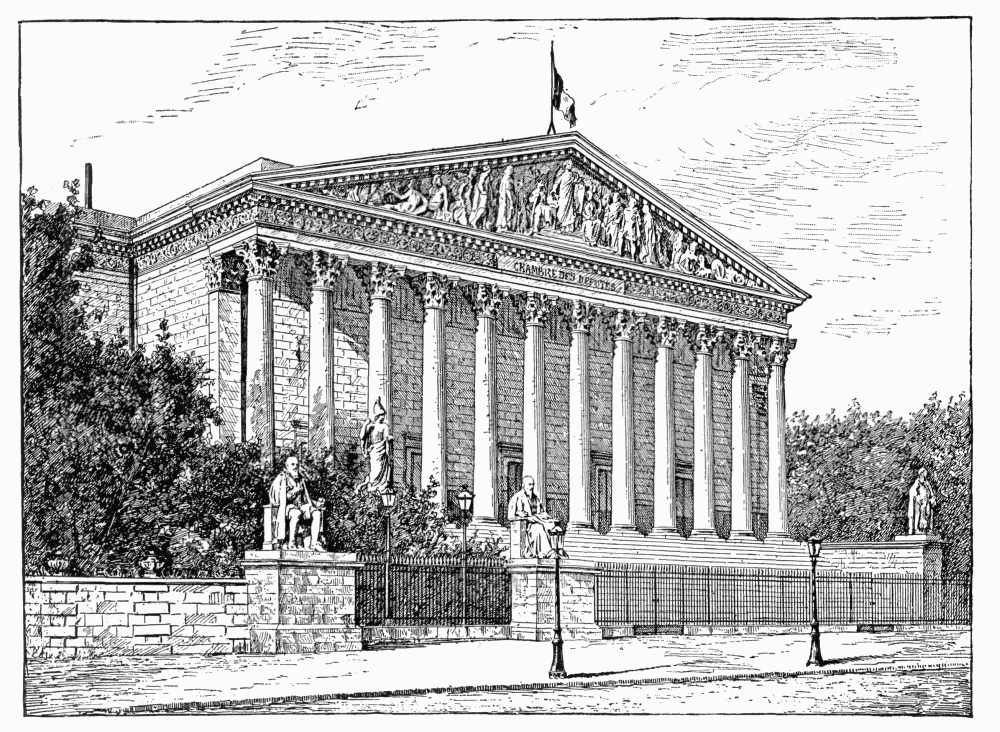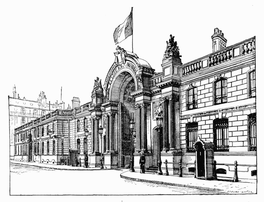 At the palace of the Ãlysée, which is his official residence, the President holds his audiences on Mondays and Thursdays, from nine o'clock to noon. To be received by him, it is necessary to write to the Secrétariat de la Présidence, requesting this honor, and to receive a reply stating the day and hour. The Deputies and Senators are received, without any letters of audience, on Wednesdays, from five to seven. The President gives each year two State balls, for which some twelve thousand invitations are issued, and also a garden-party in the grounds of the Ãlysée in June. The two legislative bodies hold their sessions on the other side of the river,—the Chamber, in the old Palais-Bourbon, opposite the end of the Pont de la Concorde, and the Senate, in the Luxembourg palace.