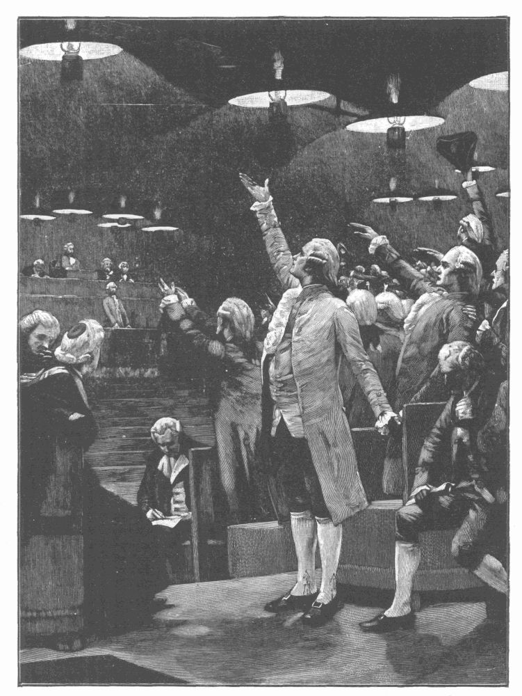 Under Philippe V, the Ãtats Généraux were convoked three times, and the regularity of their sittings thus seemingly established; this monarch also, following the procedure established under Louis XI, 1462, excluded the clergy from the Parlement, in order that he might have there only docile members. They re-entered it later under the name of conseillers clercs. In 1318 was created the Conseil étroit, or Council of State, which was the deliberative power, as the officers of the crown and the clercs du secret, from whom were selected later the secretaries of State, constituted the executive power. In the reign of Philippe VI, in 1338, the great principle of "taxation without representation is tyranny" was openly proclaimed in a meeting of the Ãtats Généraux, and the monarchs henceforth found themselves constrained to wage a varying struggle against this claim of the representatives of the nation to be consulted before the levying of imposts upon them. In the Dark Ages, now fast drawing to a close, three great principles had been promulgated which were to survive through many tribulations to the present day,—that no tax could be imposed without the consent of those who were to pay it; that no law could be enacted if it were not accepted by the representatives of those who were to obey it; that no judgment was legal unless rendered by the peers of the accused.