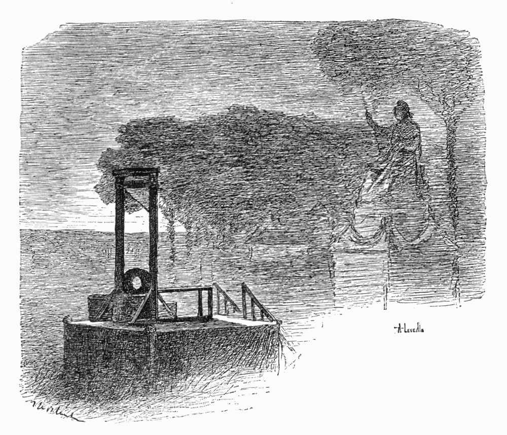 "In contemplating the consequences of the drunkenness of the tortionnaire, Gabriel Sanson lost his head. For some moments the scaffold presented a spectacle of inexpressible confusion; the valets ran about distracted, everybody cried out at once, and the unhappy executioner of the prévôté de l'hôtel tore his hair while deploring the terrible responsibility which he had brought down upon his head. The arrival of the lieutenant of the short robe, who had finished disposing his men in the enclosure, the presence of the procureur général, who had been sent for, put an end to this disorder.