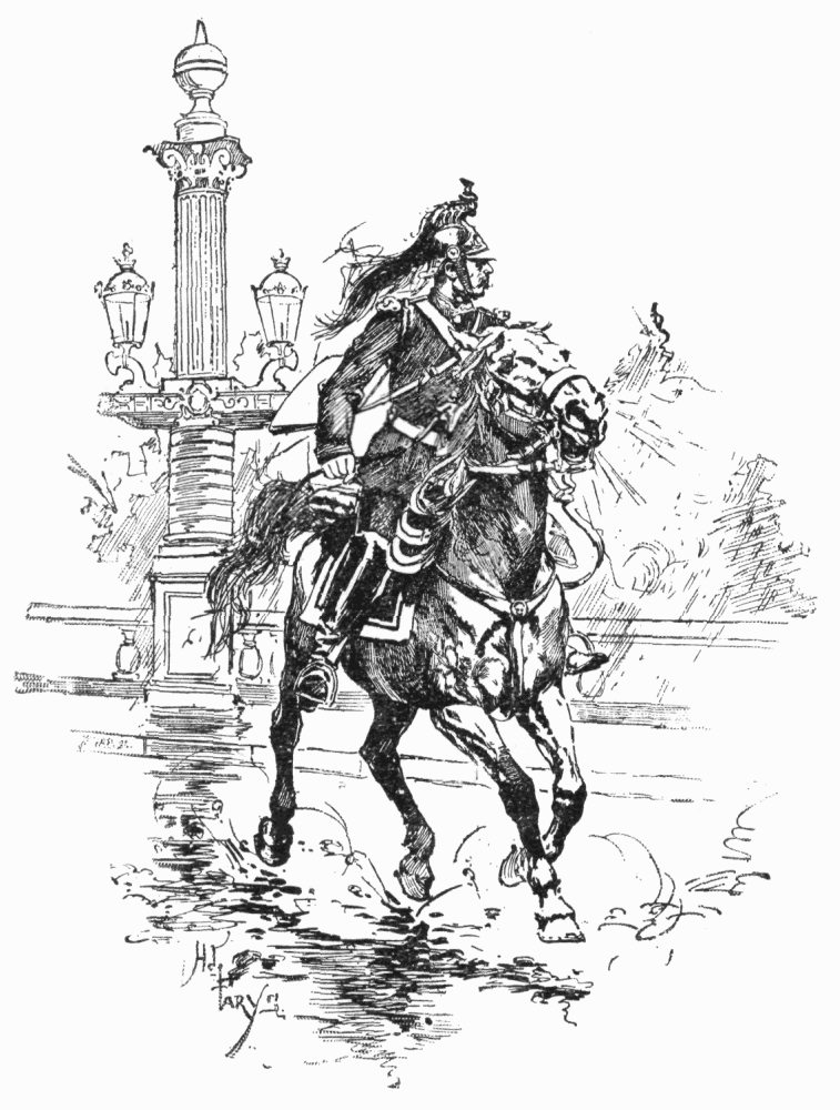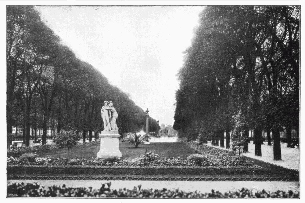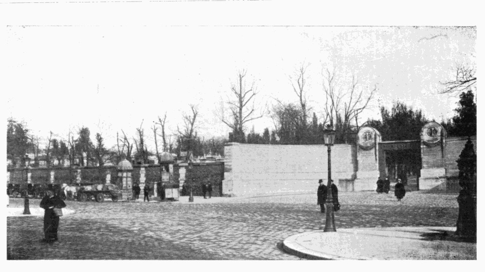 This excessive price has had the natural result of curtailing the use of electricity as an illuminator; and the usual thrifty habits of the French householder and municipality contribute to make the capital anything but a well-lighted city at night,—contrary to the general impression. The stranger who leaves the main boulevards and enters any of the minor streets, even such a wide and important one as the Boulevard Saint-Germain, is struck with the village darkness of these thoroughfares. Not only is there no other means of illumination generally but the street-lamps burning gas, which are sufficiently widely spaced,—and, in the case of the boulevard just mentioned, masked by trees,—but all the house-fronts are tightly closed and as black as night. One may cross the Place Vendôme, five minutes from the Opéra, in the middle of the evening in the middle of the season, and have barely light enough to avoid other pedestrians. All around the great circle the houses show no gleam of light in their windows, with two or three exceptions, and the effect is anything but cheerful. In this Place, as in so many localities in Paris, the pedestrians take to the middle of the streets,—in the wide thoroughfares, to cross them, or to avoid détours, and in the narrow ones, because of the insufficiency of sidewalks,—and good eyesight becomes of the utmost importance. Fortunately, the cabs and carriages all carry double lanterns, and even the bicyclers, those terrors to foot-passengers, are compelled to show a light of some kind and to sound some kind of warning. Of these, the neat and efficient little lantern and the bell fixed to the handle-bar are not yet in general use,—the French cycler mounts any kind of a lamp, even a paper Venetian lantern, on the front of his machine, and rings a tea-bell, or sounds a small horn, as he dashes along. If he display no consideration whatever for the pedestrian, he, in turn, perils his own neck with the utmost willingness, and the risks he takes in the narrow and crowded streets, and the coolness and skill with which he avoids the fate he so justly deserves, are equally remarkable.