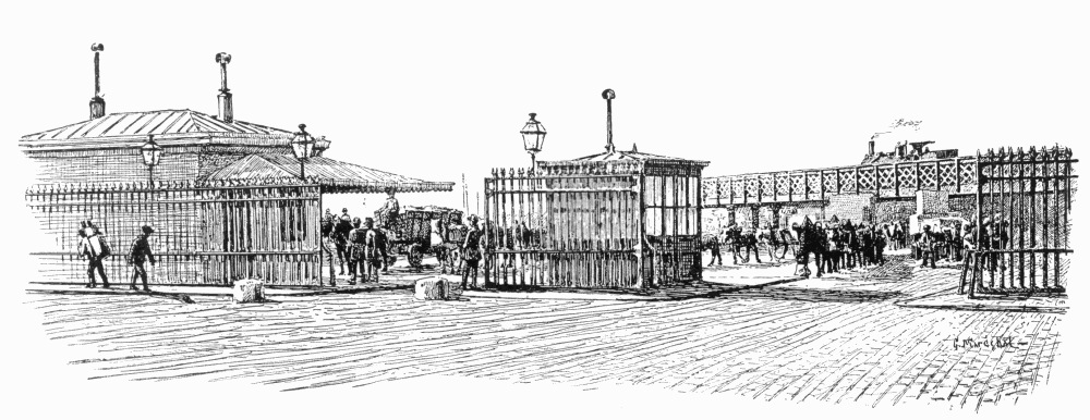 To the establishment of the octroi municipal et de bienfaisance by the Directory is due that of the great dépôts or entrepôts of wine and alcohol on the quais of the Seine,—the importers finding it very inconvenient to pay the duties upon all their casks on their first arrival. They are, therefore, allowed to store them, under the supervision of the octroi, and pay as they are sold. When the ancient corporation of the crieurs jurés announced throughout the city the arrival of a shipment of wine, the purchasers would throng to the banks of the Seine; when Louis XIV granted the first authorization to establish a halle aux vins, on condition that the profits should be divided with the Hôpital Général, the site selected was the Quai Saint-Bernard, the entrepôt of Bercy being then a market outside the city walls. The latter, on the site of the ancient Halle des Hôpitaux of the seventeenth century, developed greatly after its incorporation within the city limits; it is at present divided into two sections, Le Grand Bercy and Le Petit Château. The city is the proprietor, and rents spaces to applicants, generally for a year at a time. The octroi is stationed at every gate of exit, and at numerous posts within the enclosure. Not only is the wine stored here, but it is blended and assorted in great tuns, and there is also storage for alcohol, liquors of all kinds, and oil. The huge enclosure is very carefully policed, not only for the detection of thieves, but also of fraudulent practices; at night there are four rounds, of which the second and third are made by guardians armed with revolvers (a recent innovation), and accompanied by eight shaggy watch-dogs.