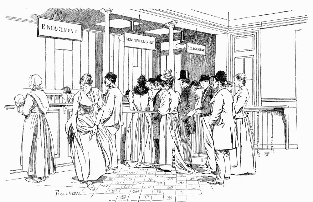 Although its functions, strictly speaking, are confined to the pursuit and punishment of misdemeanors and crimes, the Paris police occupies itself with a great number of other affairs that tend to enhance the comfort and security of the citizen. In the cabinet of the Préfet, a vast number of delicate affairs are treated with the utmost discrimination; the Commissaires render daily numerous services of this kind to the public. Very many disputes which would otherwise be brought before the Juge de Paix are settled before a Commissaire, without cost and with a great saving of time. A tenant summons before this officer his landlord who refuses to allow him to move out on the pretence that he has not paid his rent; the case is argued before the police magistrate, and a judgment rendered which is accepted as final. Two persons quarrel in the street and come to blows; instead of being arrested and brought before the tribunaux correctionnels, they are conducted before the Commissaire, where one of them admits his error and apologizes. A jeweler confides a quantity of precious stones to a trusted agent to dispose of, but afterward has reasons to believe that the salesman is meditating flight; if he carry his case to the Tribunal de Commerce, the delays will give the other ample time to abscond. But if he cause him to be brought to the Commissariat of police, the chances are that he will recover his property and that the culprit will depart admonished and repentant. A married couple are on the point of disagreeing, and applying for a divorce; this useful official summons them before him, listens to their explanations and accusations, delivers to them a moral lecture, and effects a reconciliation. The search for a missing spouse—whether he or she be really wanted by the abandoned partner, or whether the latter cherish secret hopes that the search be fruitless, so that the divorce may be obtained—is one of the most frequent charges of this confidential police. Those parents who cruelly treat their children, those dissipated sons of families who will not listen to parental admonition, are summoned before the Commissaire and speedily brought to reason.