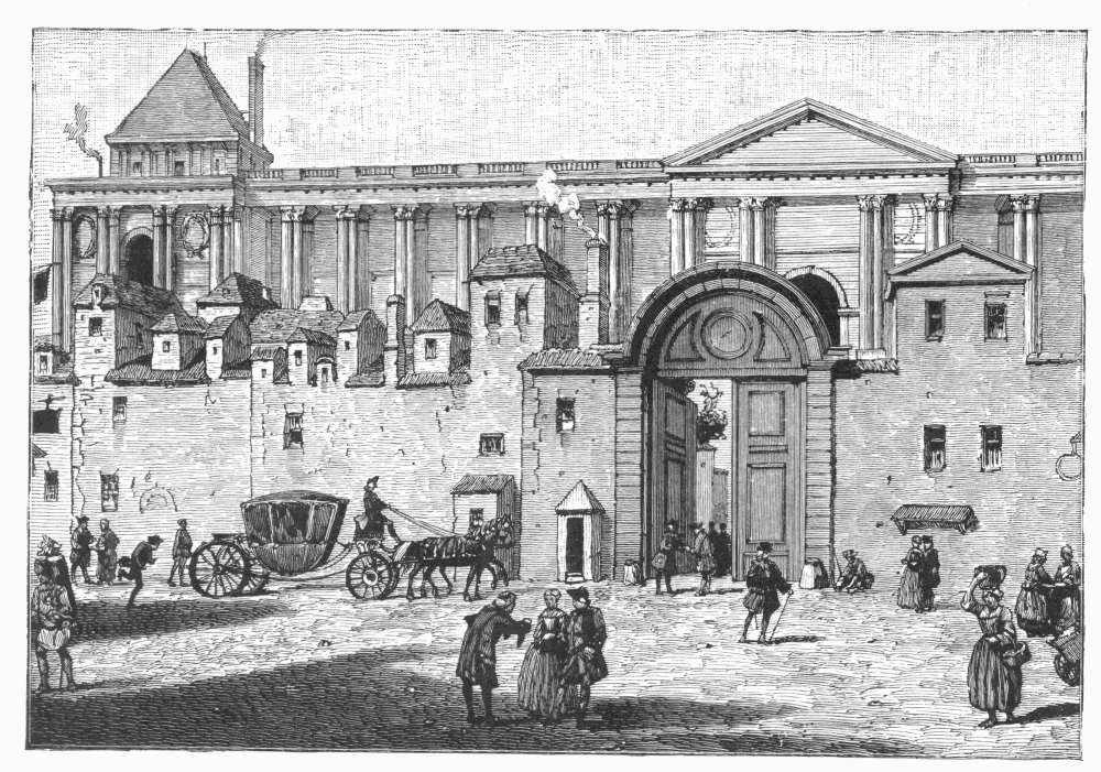 BUILDING OF THE POST-OFFICE, OPPOSITE THE COLONNADE OF THE LOUVRE, SEVENTEENTH CENTURY. From an old engraving.