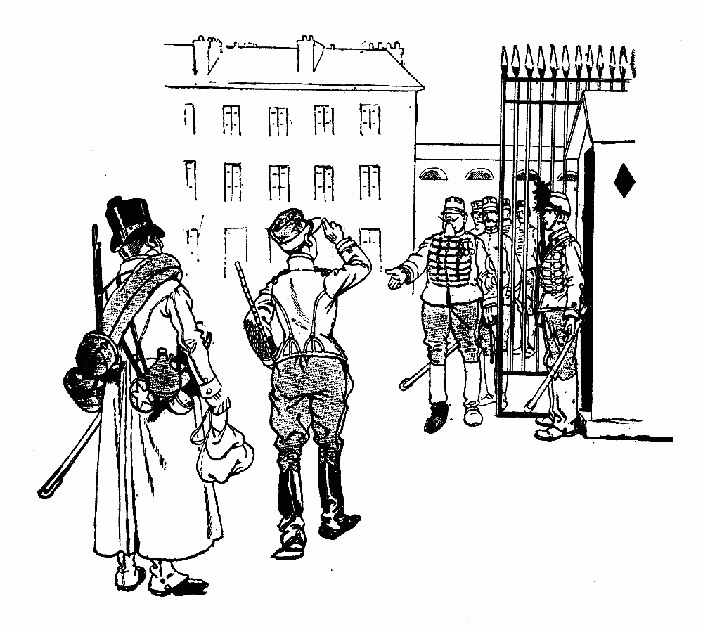 Gardiens de la Paix is now the official title of the efficient Paris policemen, who were formerly known as Sergents de Ville, under which title their corps was organized in 1829. Modified in their organization in 1848 and in 1859, they were disbanded on the memorable 4th of September, 1870. Like the firemen, they are all soldiers, and in case of war rejoin their respective corps. From the point of view of the police, Paris is divided into four great divisions, each including a certain number of arrondissements, and having at its head a Chef. Under the orders of the Commissaires are placed the twenty-five Officiers de Paix, and the Inspecteurs Principaux, their substitutes; next in rank come the Brigadiers, a hundred in number, then the eight hundred and eighty Sous-Brigadiers and the seven thousand one hundred agents.