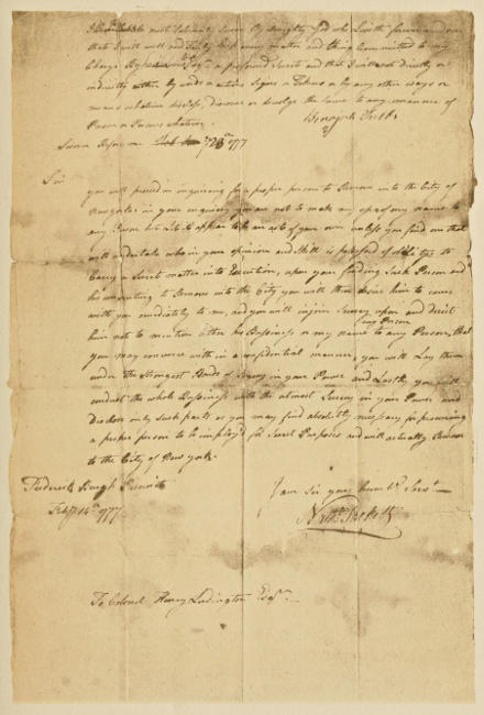 | Letter from Col. Nathaniel Sackett to Colonel Ludington on secret service | 114 |